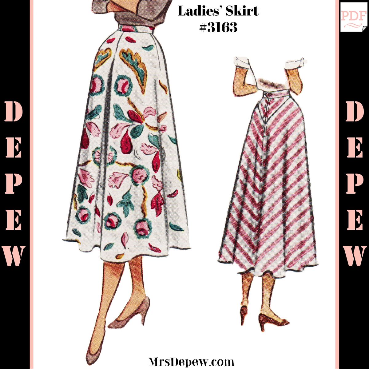 Vintage Sewing Pattern Ladies 1940s 1950s Skirt Multisize 3163 24 38 Waist Instant Download Pdf